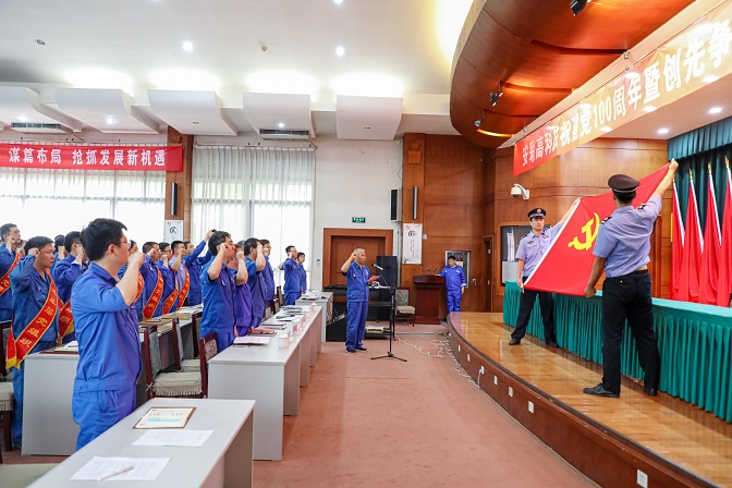 “我志愿加入中國共產(chǎn)黨,擁護(hù)黨的綱領(lǐng),遵守黨的章程……”在何董的帶領(lǐng)下,公司新黨員面向鮮艷的黨旗莊嚴(yán)宣誓,與會黨員們也一同重溫了入黨誓詞。